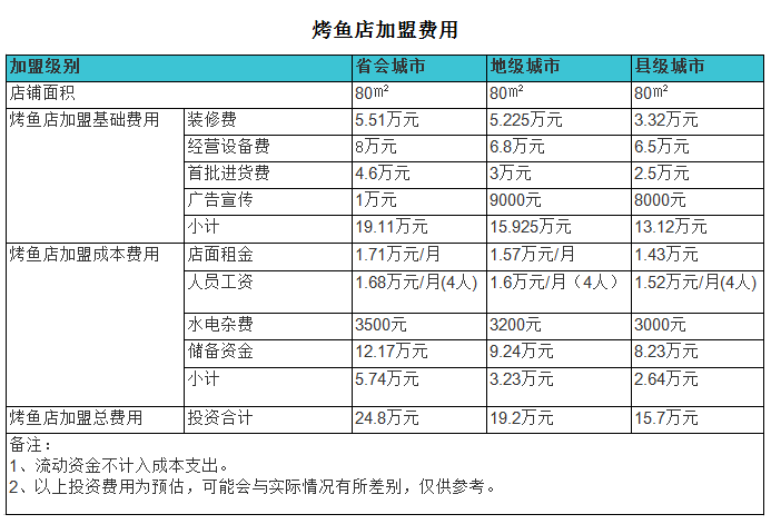 開家烤魚店投資一般需要多少錢?縣級城市80㎡店面投資15萬開店