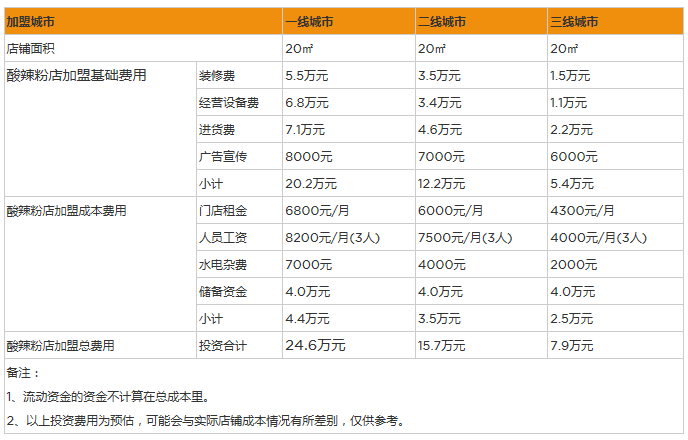 門面租金算是一筆較大的開銷,但開餐飲店總是要選擇好的門店才是,不同地段自然價格也不同。普通一家酸辣粉的店面應該在20平米左右,成本也就在4000元左右吧。