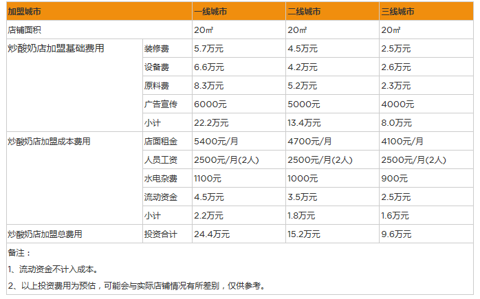 開家炒酸奶店投資一般需要多少錢?在三線城市開店投資9萬