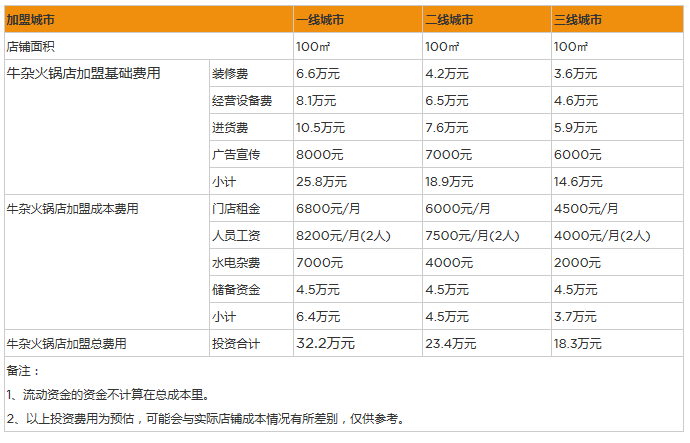 1、目前市場上牛雜火鍋店品牌的特許權使用費在三五萬元不等,考慮全面的技術培訓,運營服務,低成本的需要,但沒有加盟支持是不同缺少的。
