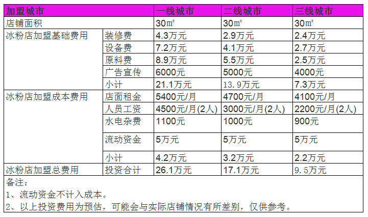 開家冰粉店投資一般需要多少錢?30㎡投資9萬,詳情數據分析