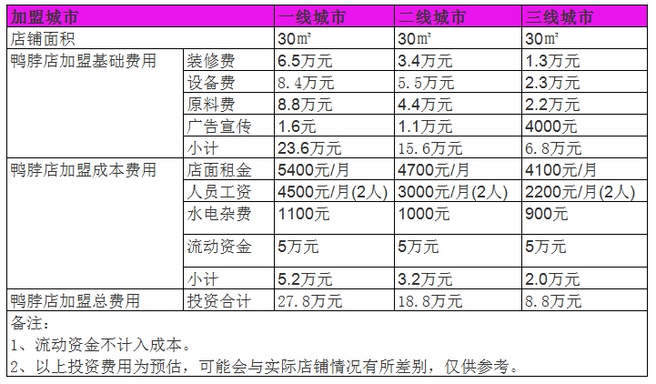 開家鴨脖店投資一般需要多少錢?在三線城市開店投資8萬