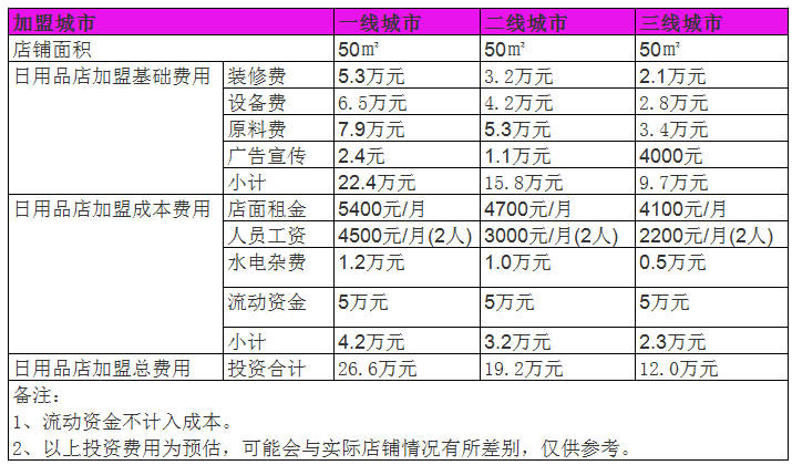 開家日用品店投資一般需要多少錢?日用品店50㎡總預算11萬