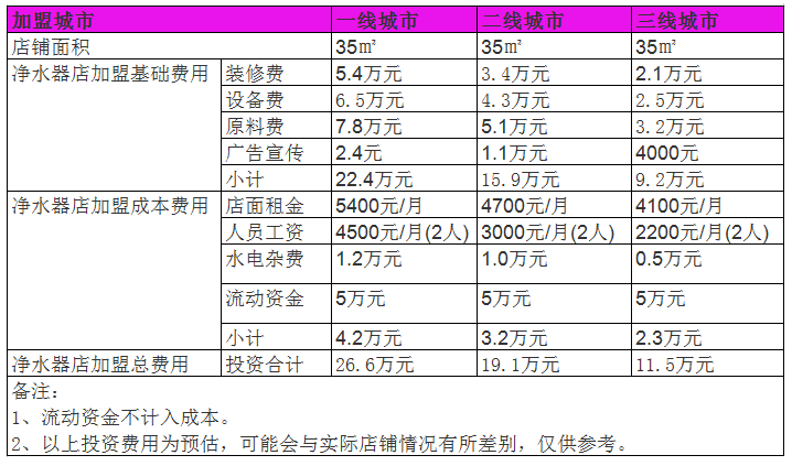 開家凈水器店投資一般需要多少錢?35㎡店面投資11萬照樣盈利賺錢