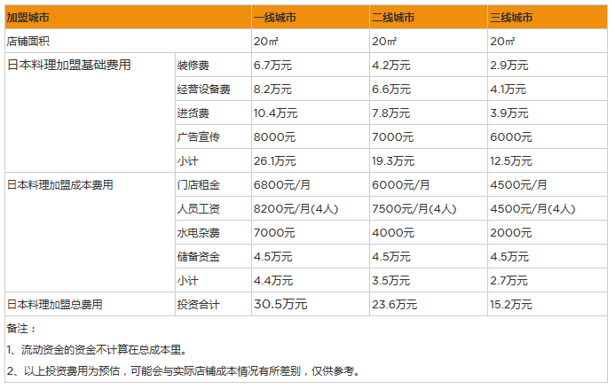 開家日式料理投資一般需要多少錢?投資15萬,月盈利2萬