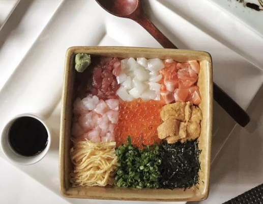 就比如三文魚明太子蓋飯,小李的壽司店會在食客面前用火焰赤燒每日新鮮入貨的上等三文魚,赤焰把魚肉燒得剛好融化,放入嘴中,入口即化的三文魚讓人怎么吃都不嫌多。而刺身的紋理一看就知道新鮮入貨的,檸檬葉的清香附著在刺身的表面,放進口中那一刻,香味直奔鼻腔。