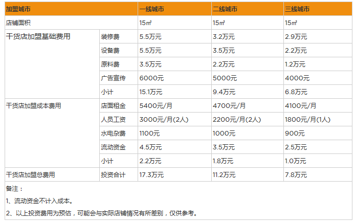 不管是開哪個(gè)品牌的干貨店都需要自行承擔(dān)開店費(fèi)用的,畢竟后期盈利完全是個(gè)人所得的。