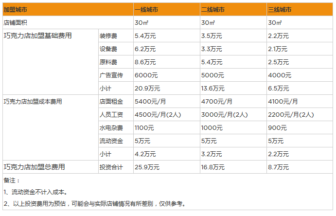 開(kāi)家巧克力店投資一般需要多少錢(qián)?30㎡店鋪啟動(dòng)資金8萬(wàn)