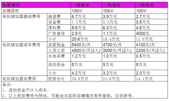 開家電玩城投資一般需要多少錢?100㎡投資14萬,詳情數據分析